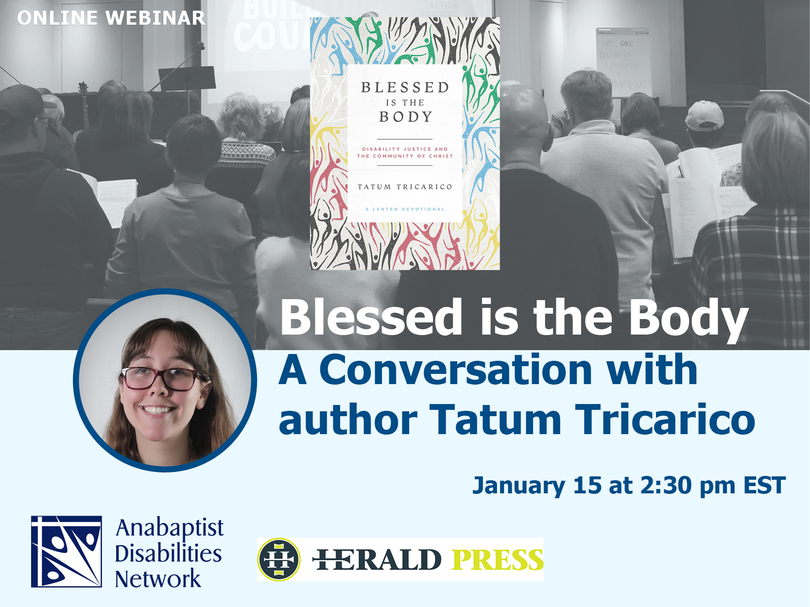 Anabaptist Disabilities Network and Herald Press invite you to a webinar with Tatum Tricarico, author of Blessed is the Body, a Lenten devotional centered around disability justice.